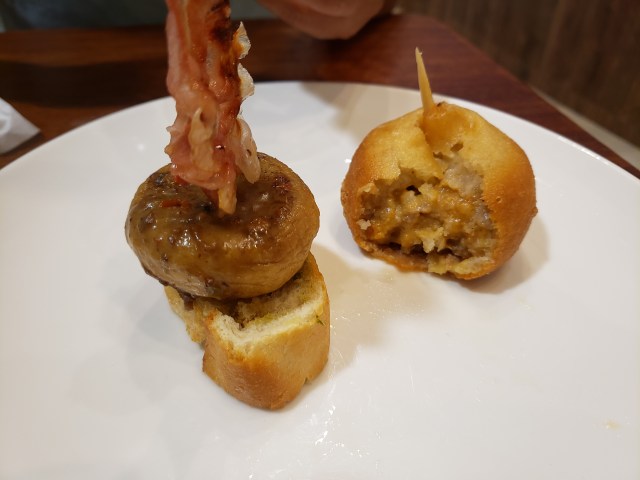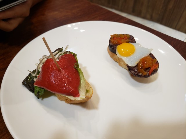 Jamon, mushroom, pork, pimento, fish, egg, blood sausage and bread. Not much for the vegetarian or vegan.