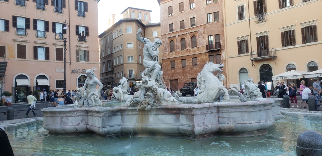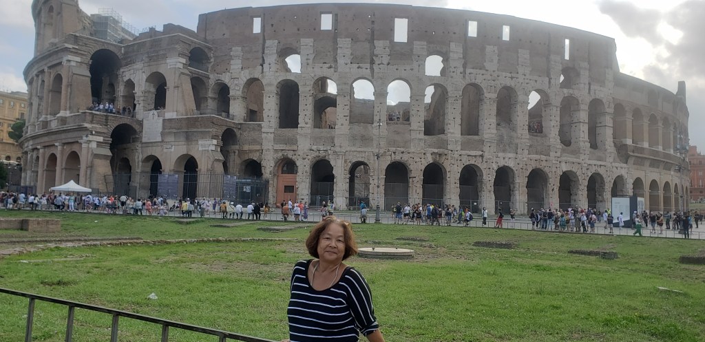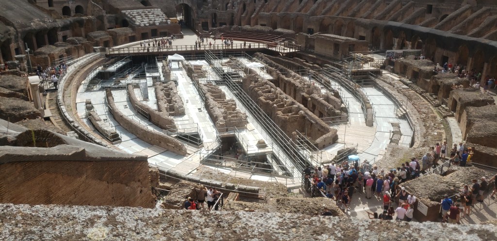 The Colesseum and the gladiators to me represent the gruesome side of man. There were battles to the death and “entertaining” ways to punish and kill the criminals. It seemed to be a way for the Roman’s to enjoy their power over man, nature and even death. I can’t get into it, but, I can say, it was a monumental feat just to construct the Collesseum.