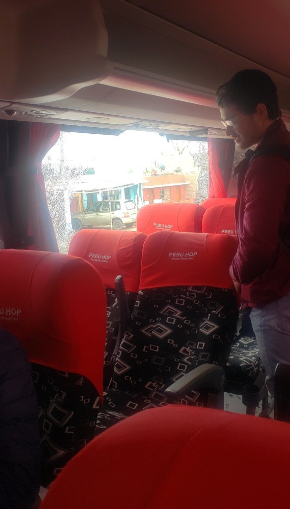 Peru Hop has been amazing. This bus company is like a tour company which runs buses throughout the southern part of Peru. You can get off and stay as long as you want then hop again. There is massive communication as people are coming and going. They pick you up and drop you off at your designated locations and it helps if those places are on their lists, but they will always find a way to get you. You can change plans as long as you give them 12 hr. notice.