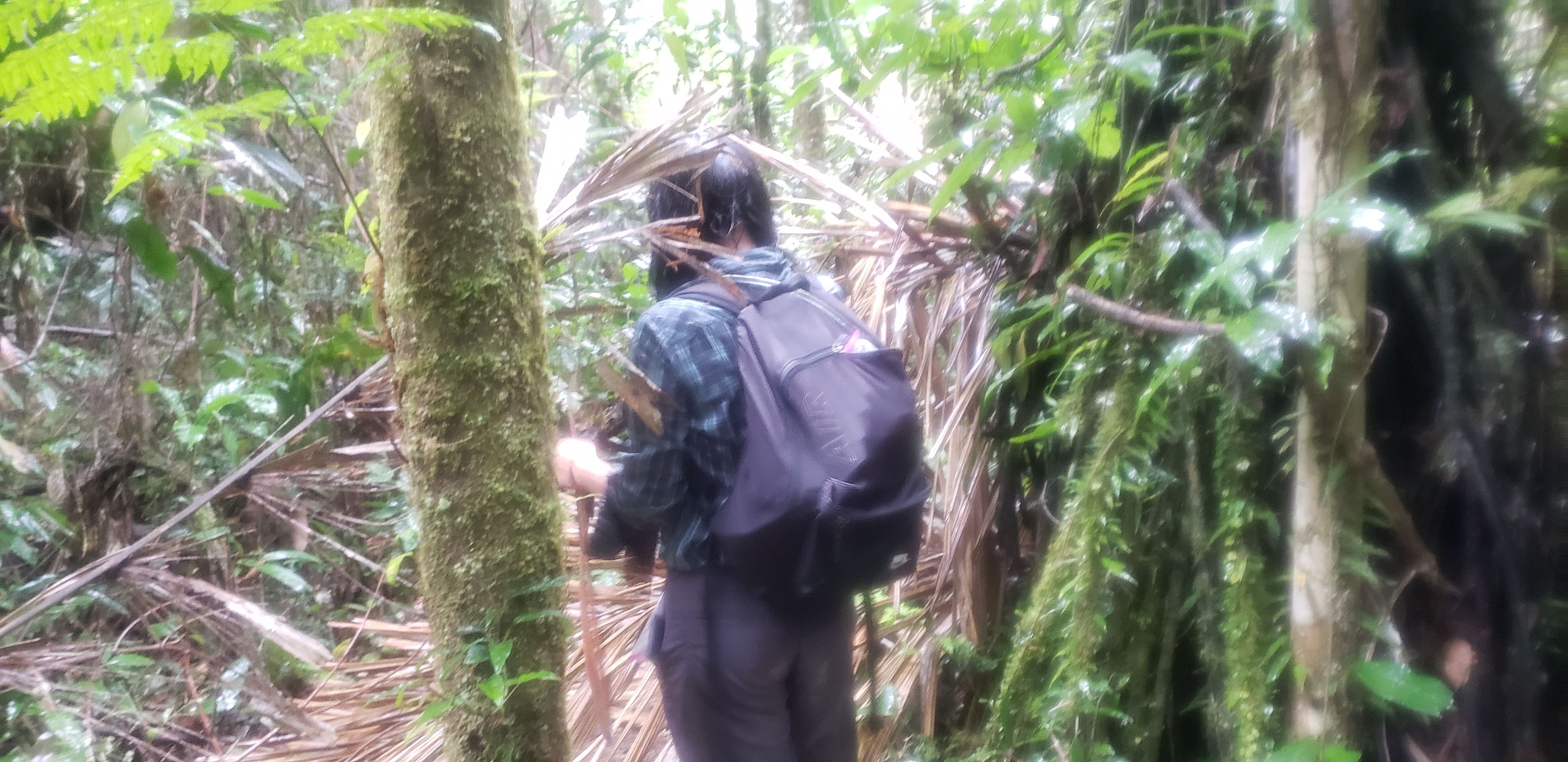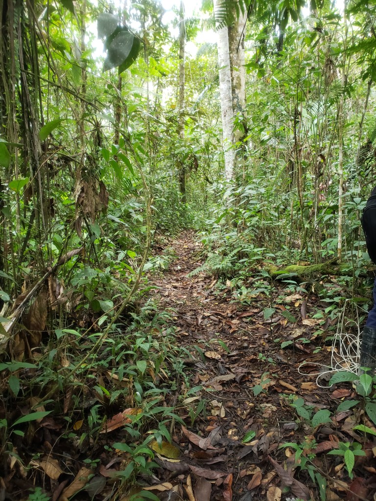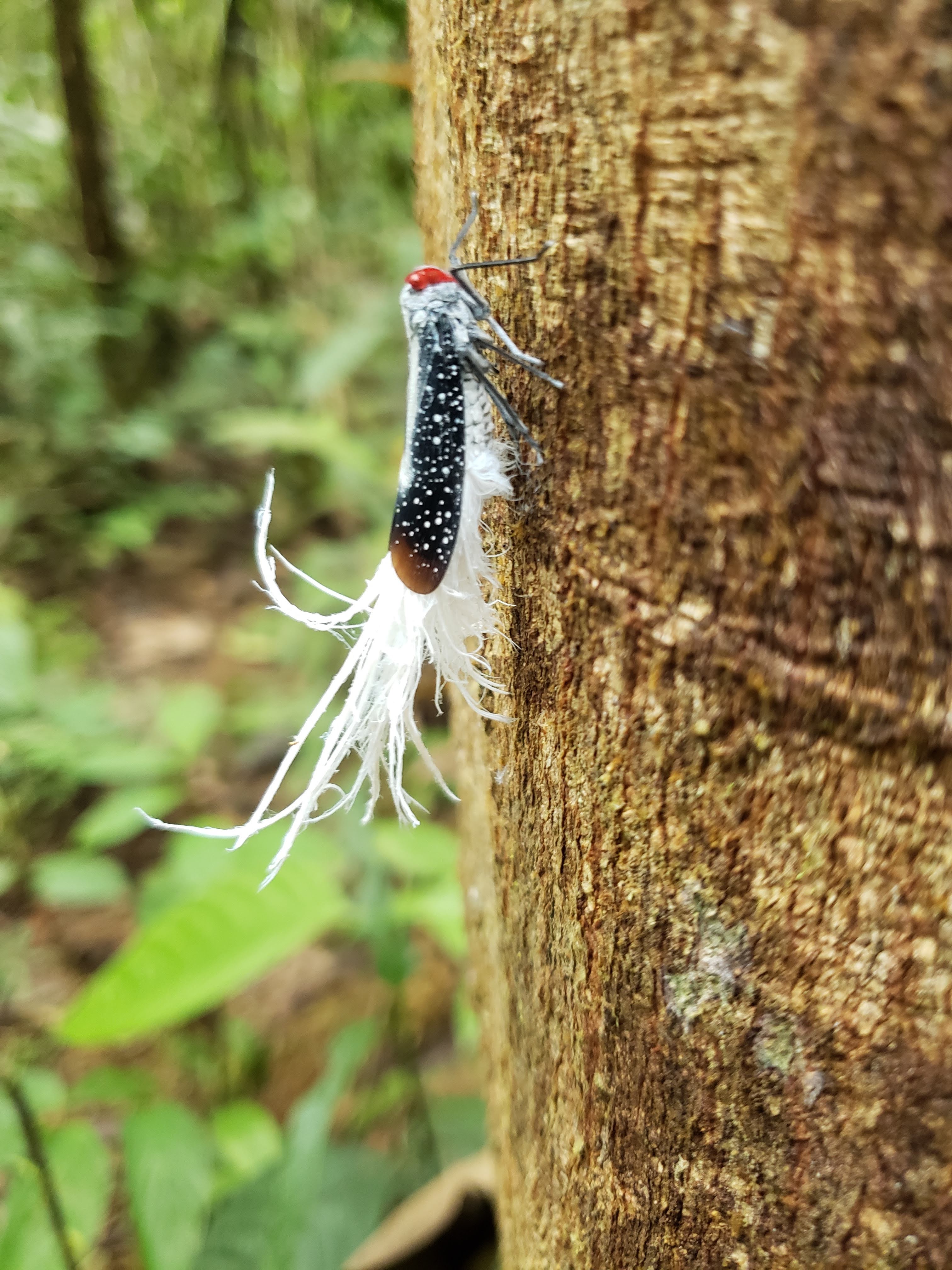 Got back from setting up butterfly traps in P4. Hilly and muddy. Luis and Jackie helped me alot. Left at 8 returned at 11:30. Saw the most unusual bug and a transparent butterfly.