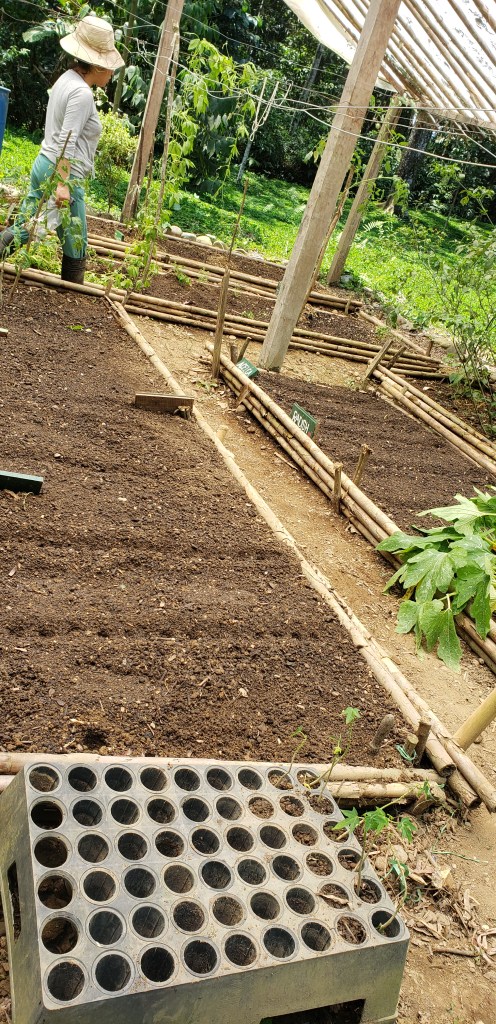 Worked bio garden again. Most of the beds are weeded and watered so we made some compost and planted some big seeds in starter pots.