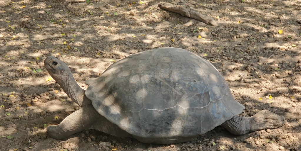 On the first day we walked to the turtle breeding center then went to see the flamingos. At the breeding center got to see the Isabella tortoises with the flat back. A flat back enables them to reach higher and stretch out their neck more to reach the branches for food.