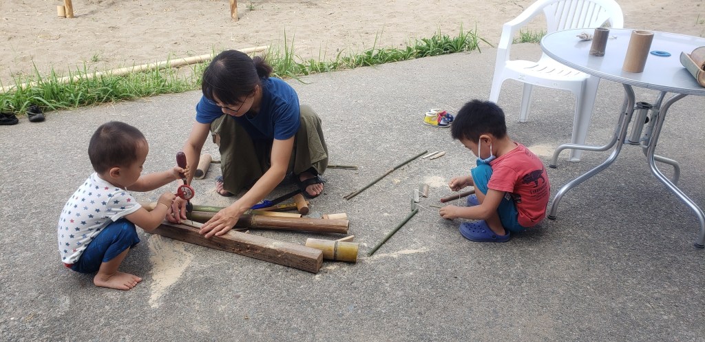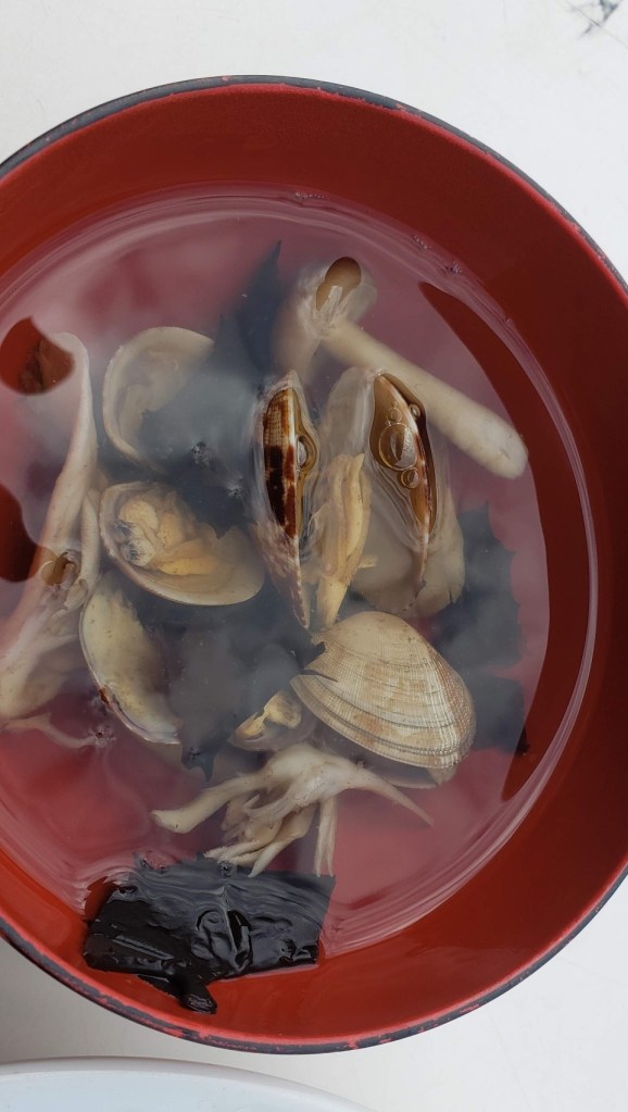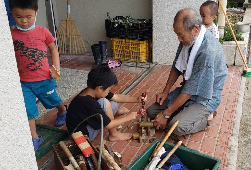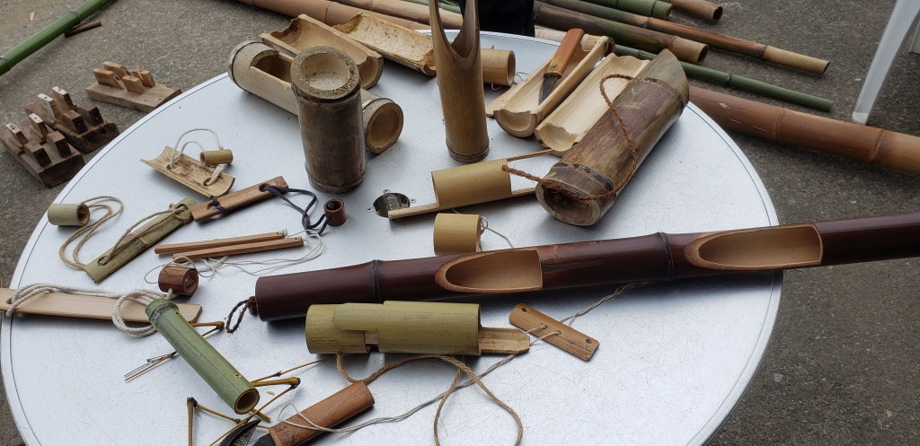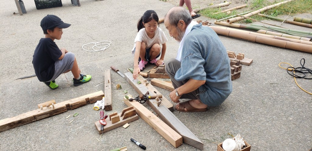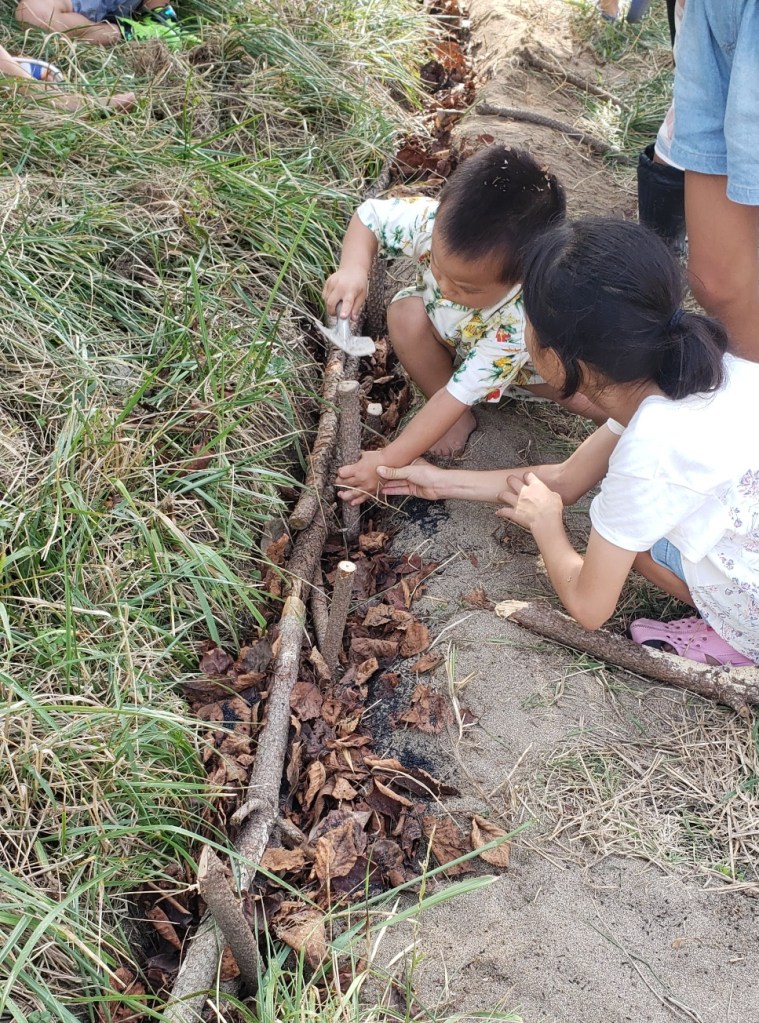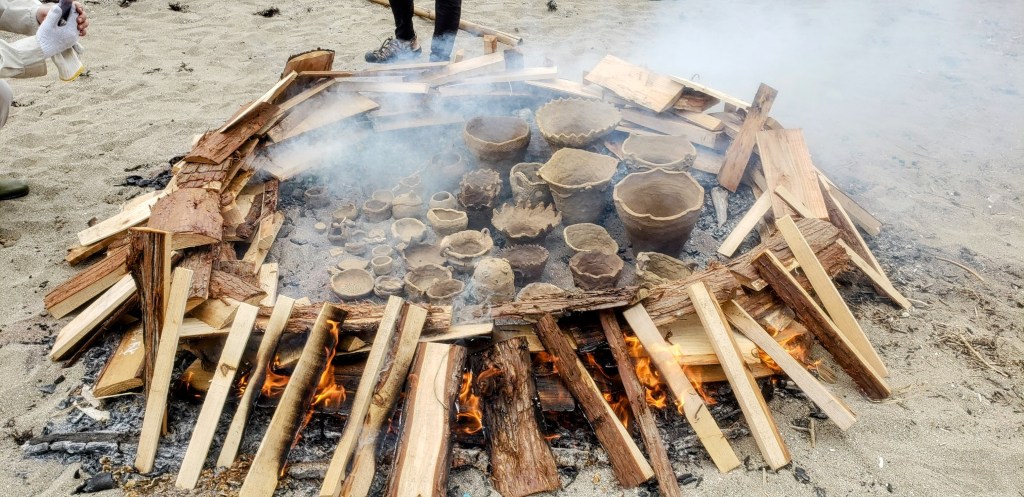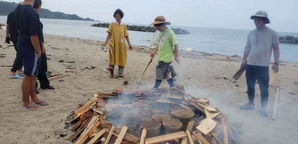 Another fabulous adventure was a “stone age” experience. In Sado there is a place which practices ancient ways of doing things. They “fired” earthenware (pottery) which was made over a year ago in the fire on the beach. There was a master who showed us how to carve toys and other objects from bamboo. We made our lunch over the fire and shared our meal together. After lunch we made holes in the ground to assist with irrigation and put iron and leaves in the holes. Last, but not least, we did a beach clean up.