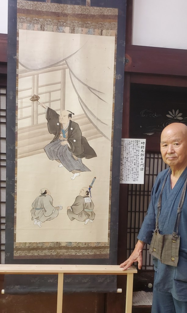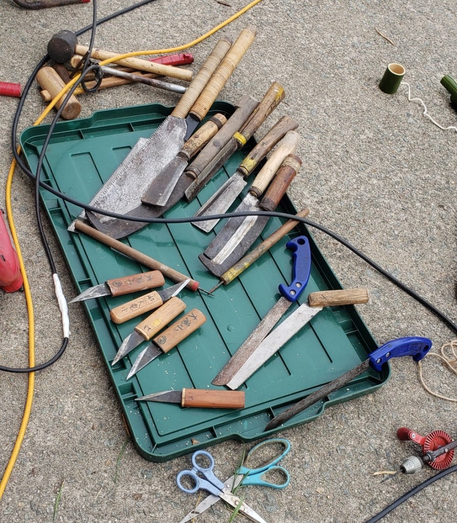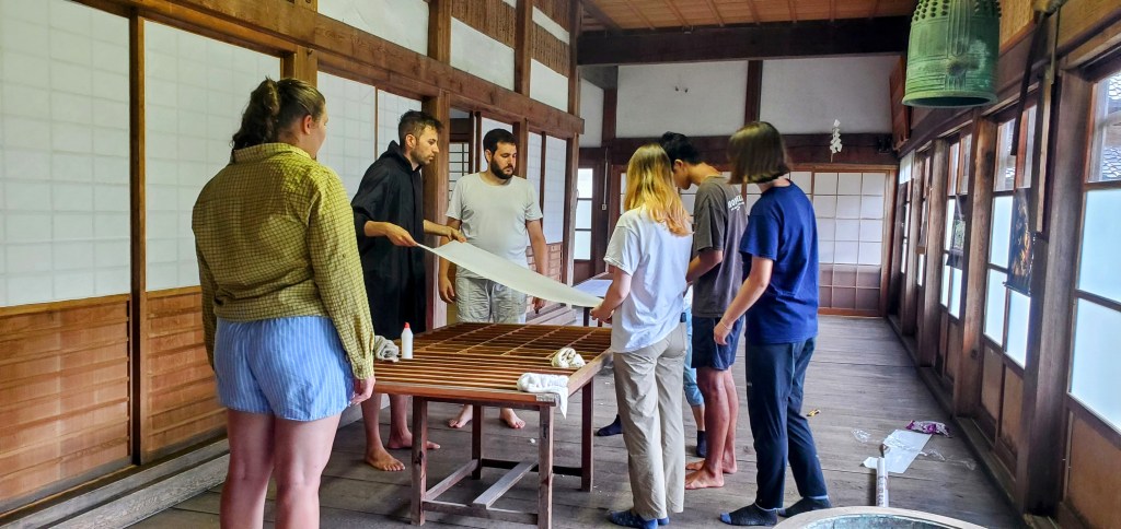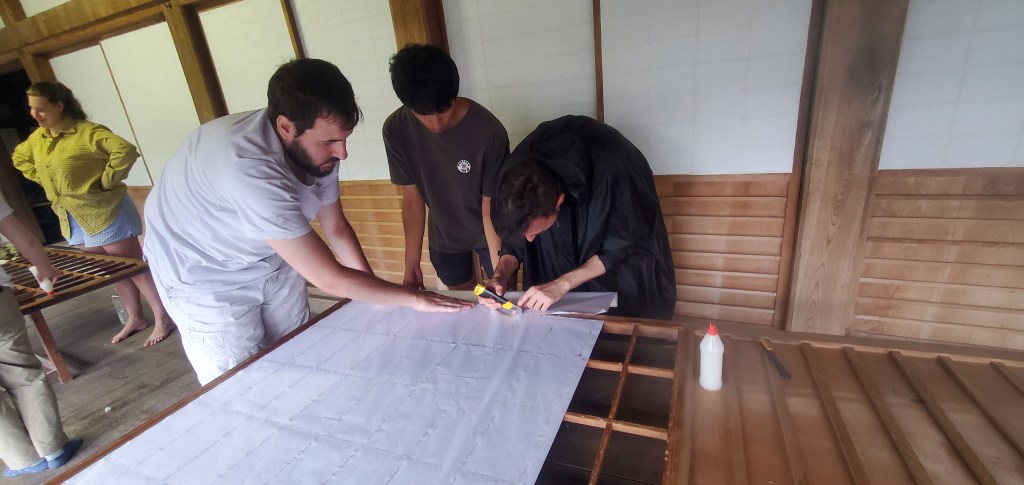 Keiko wanted us to replace some screen doors in the temple. You need to be careful not to accidentally tear the paper or it will have been all for nothing and you’d have to start again. We also spackled the outside wall as the wall coverings are old, cracking and coming off. They look better now, but probably should be totally replaced.