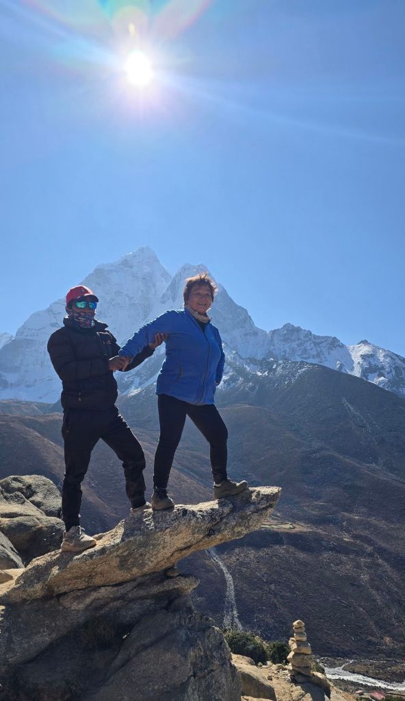 Well… Lukla, we did make it… horray! Didn’t really know if I could complete this. I’m so proud that I did! Mostly due to Jhit and Krishna, who were so supportive, comforting, and encouraging. I am so grateful for them. I feel like I died and have come out with a renewed spirit. I really suffered that one night and into the next day. I never felt like I was unable to breathe before… then your mind starts to play tricks and puts you in panic mode. I never have had anxiety attacks, but now I think I know what it’s like. Try as hard as I could… I was finally able to settle my thoughts and become at peace. I have learned so much on this trek. It most surely was not about the end… in this case, we reached the base camp but returned to the beginning. So, it truly was about the journey. It is what we learned along the way. I have learned that I can meet challenges and succeed in my way. I am stronger than I think I am, mentally and physically. I need others for help and support. I am worthy, and I am appreciated. Thank you, Jhit, Krishna, and Himalayan Scenery Treks, for making this happen.
