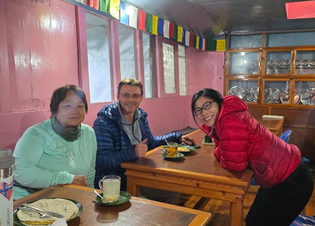 Prepared the prayer flags for mom (who passed away Aug 23) and Venni (Jhonsen’s mom who passed away a week after my mom). I want to leave them at Everest Base Camp. It brought back lots of thoughts. The tears that hadn’t yet been shed fell through the night and in the morning. I don’t think I dealt with my mom’s death till now. Maybe the elevation also makes me emotional. Jhit is worried about me, but I told him it had nothing to do with him. I just could not share it yet… maybe tonight. I will be alright. It’s just something I need to deal with.
