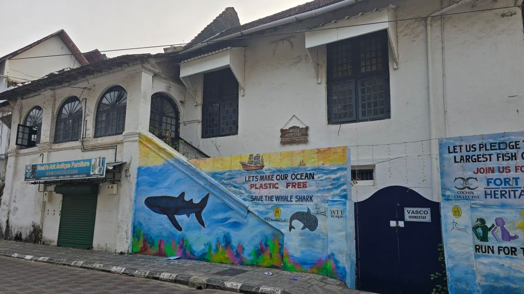 The next morning some of us went on a historical walking tour. Kochi is quite an interesting place. Once a vibrant spice trading market, Kochi, in the state of Kerala, also known as Cochin, has had Portuguese, British, Chinese, Arab and Dutch influences. Kochi was once part of the Spice trade and still remains famous for its black pepper among other spices. They still use the Chinese fishing nets and you’ll see a variety of churches, including Christian, Jewish as well as Muslim and Hindu.