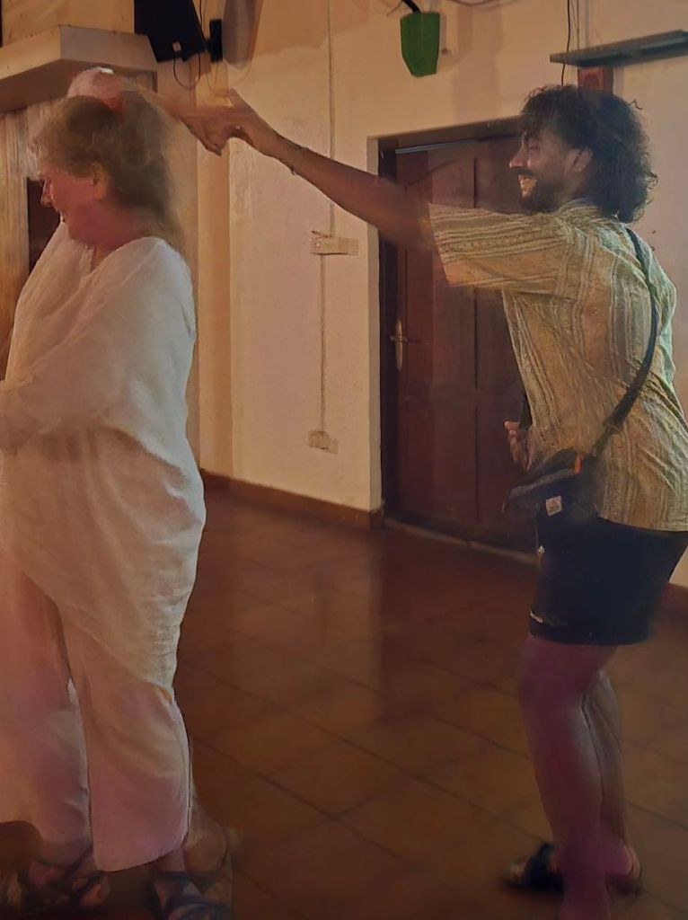 Afterward, we walked back and stopped for a drink. Low and behold, they had youtube projected on the wall and played Indian, English, and contemporary videos. Needless to say, I saw a girl who wanted to dance, so we started, and soon, many others joined us. What fun, that was! That was a great introduction to what was to become an awesome experience.