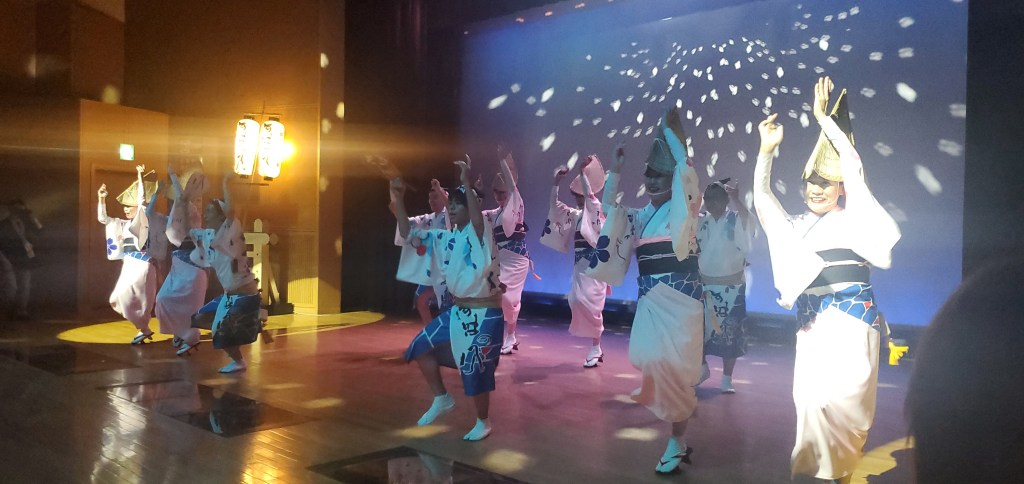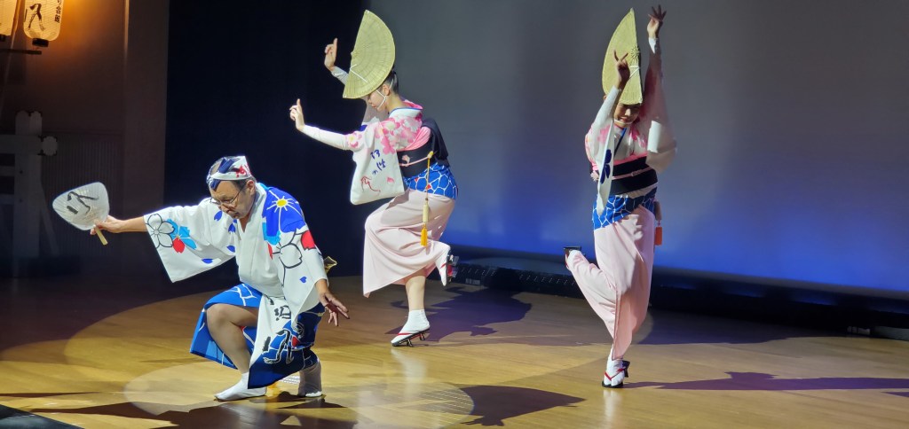 Akio, my cousin, and his wife Catherine went to a Geisha dance performance. The venue was in a theater in the Gion District and it was beautiful.
